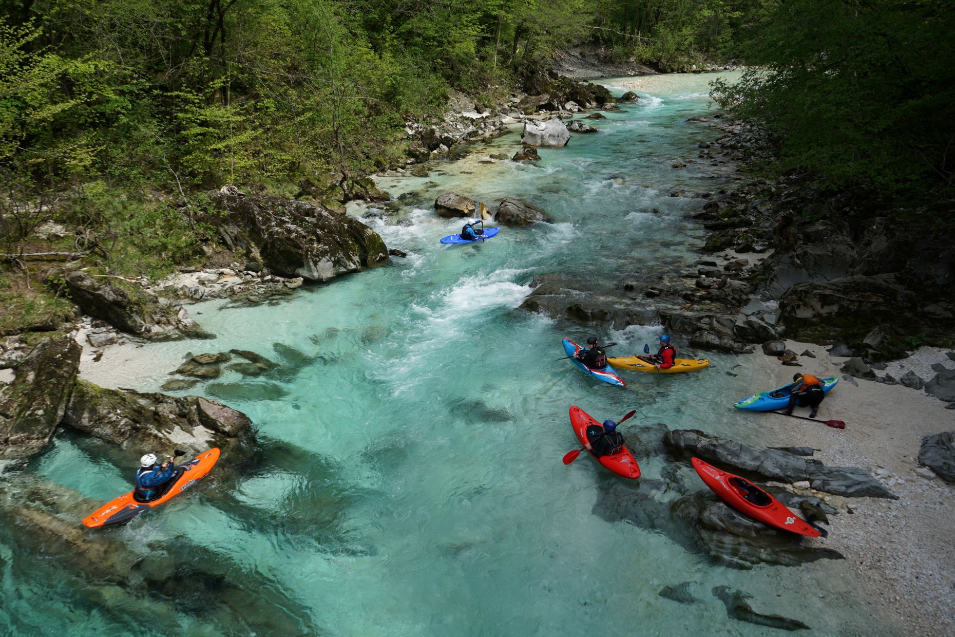 The combination of fast-flowing whitewater and technical, boulder-choked sections makes this destination ideal for the more experienced whitewater kayaker who enjoys creek boating — but also suitable for brave beginners. If you have experienced the Soča River in summer, we highly recommend coming back in spring to discover this stunning river under different conditions.