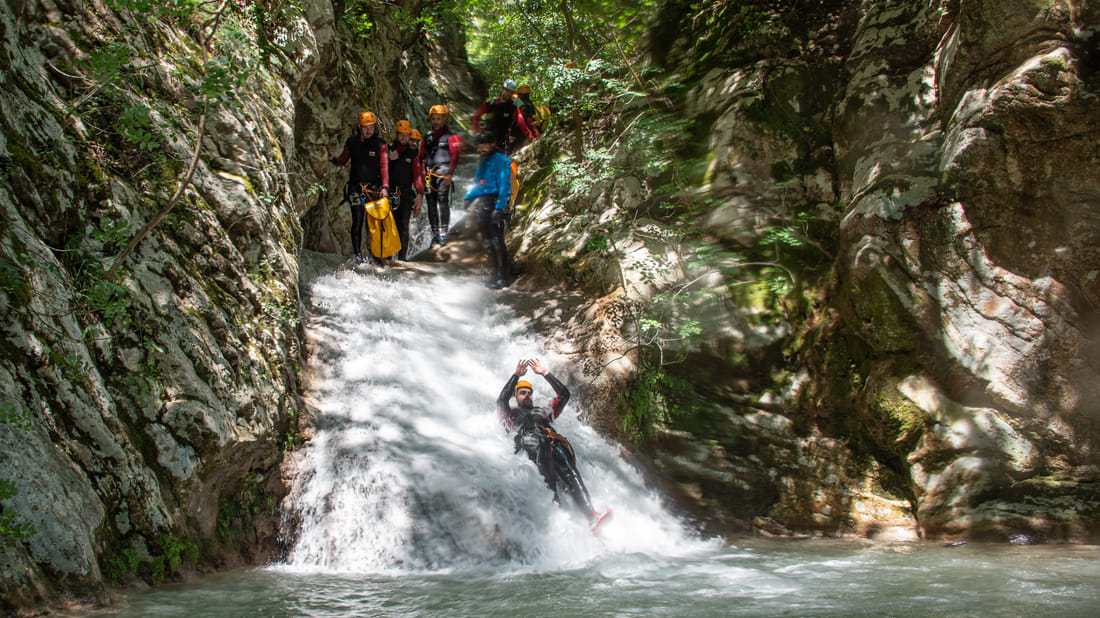 A canyoning trip for beginners at the magic world of Neda natural waterpark.