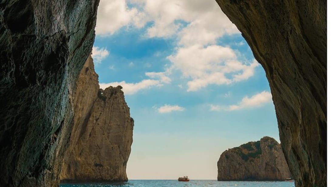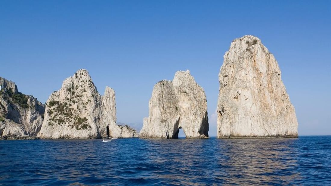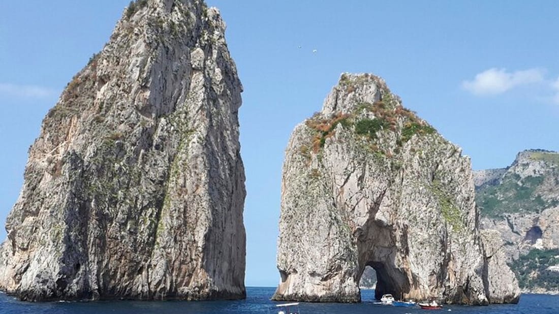 You will then return to the boat and your captain will then you to some of the island's most scenic swimming spots. Dive into the crystal-clear waters surrounding Capri for a refreshing swim or a snorkeling adventure, where you can discover vibrant marine life. Glide through hidden bays and secluded coves while soaking in breathtaking views of dramatic rock formations from a unique perspective. For those who prefer to relax, lounge on the boat's deck, enjoying the stunning views of one of the world’s most beautiful bays, complete with snacks and drinks provided for your comfort.