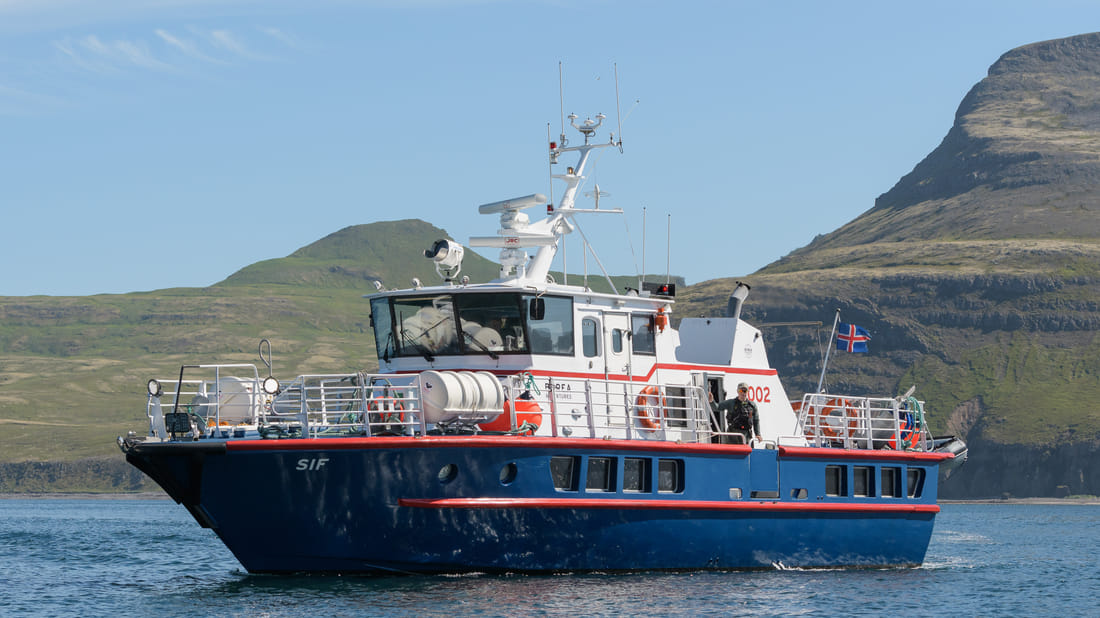Join us on our fully fitted boat Síf, where we depart from Isafjordur and journey out into the surrounding Isafjarðardjúp fjord. Here we will look out for the blows of distant whales, and our expert captain will take you as close as possible without causing disturbance to the whales. The fjord is bursting with life, and there is the possibility of seeing humpback and minke whales, as well as dolphins and porpoises. We will search for the humpback, as they are one of the few species of whale which flashes you their tail on a dive, an incredible sight to see! You are also likely to see the many puffins in the water which nest on nearby Vigur and Æðey islands. On very rare occasions, killer whales (orcas) will also pass through the area. On our trip will be our experienced boat crew, and a guide to share with you their extensive knowledge of the local wildlife and area.